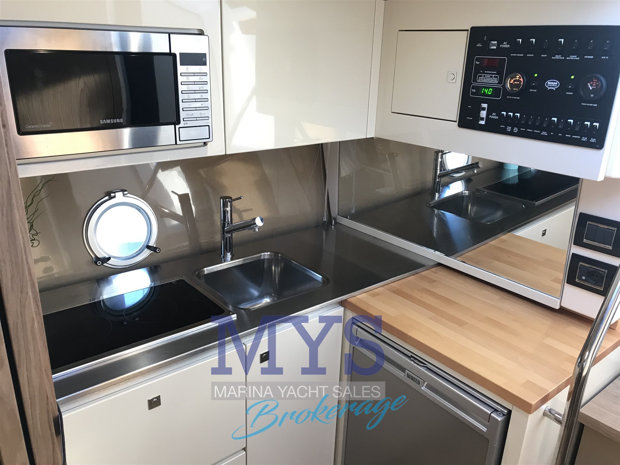 Ceramic hot plate, Coffee Machine, Deck Refrigerator, Galley, Microwave Oven, Refrigerator.