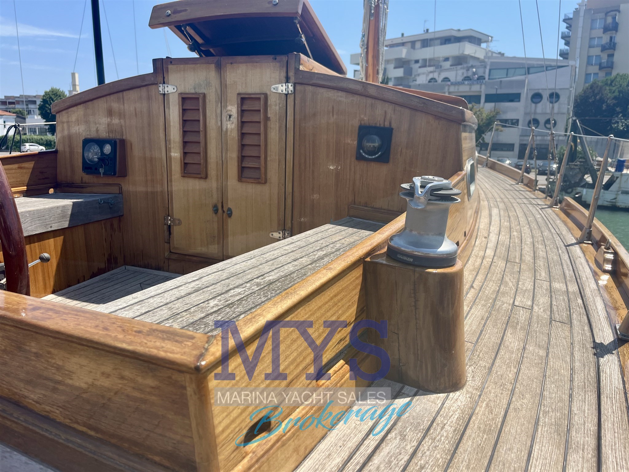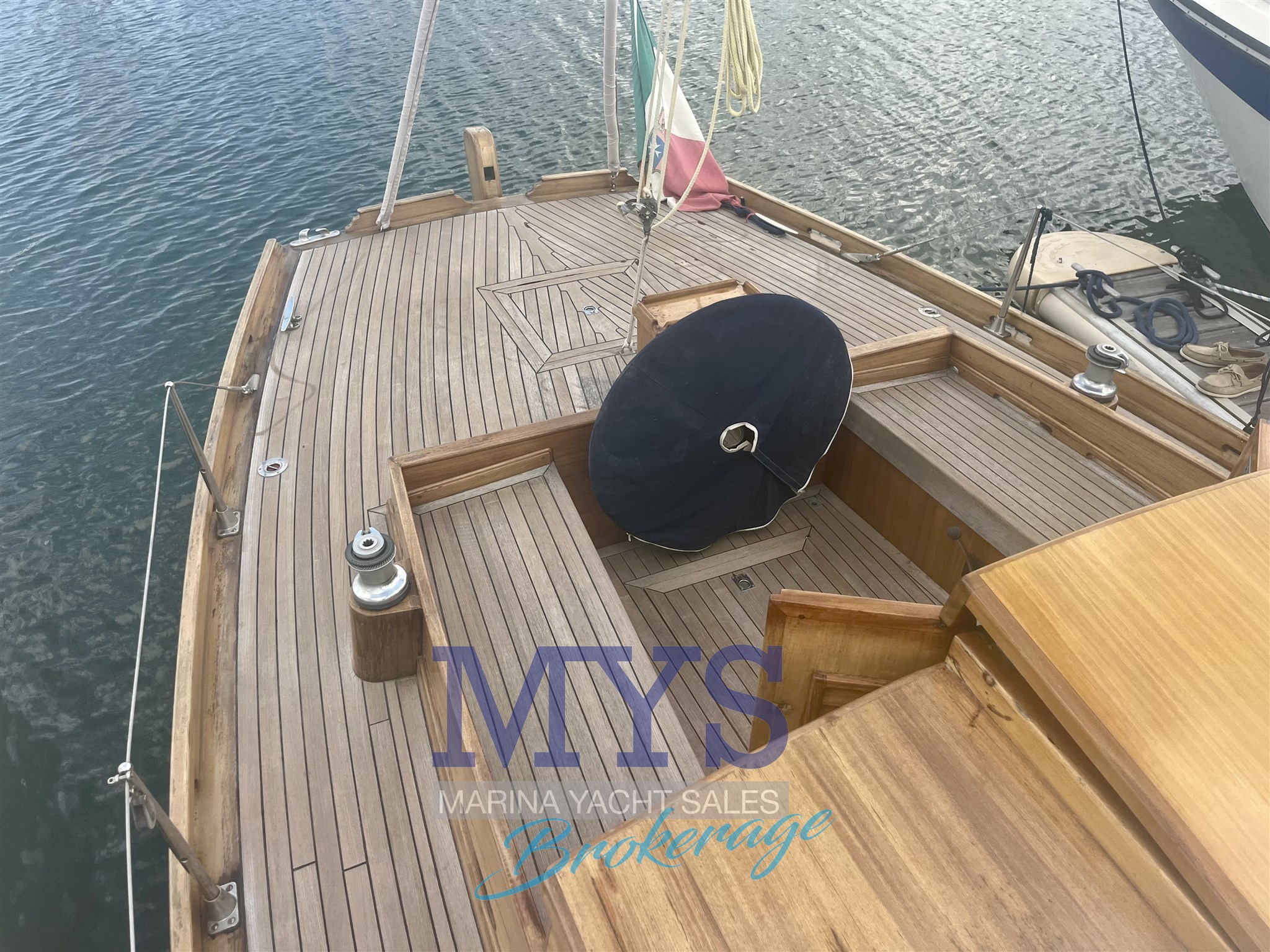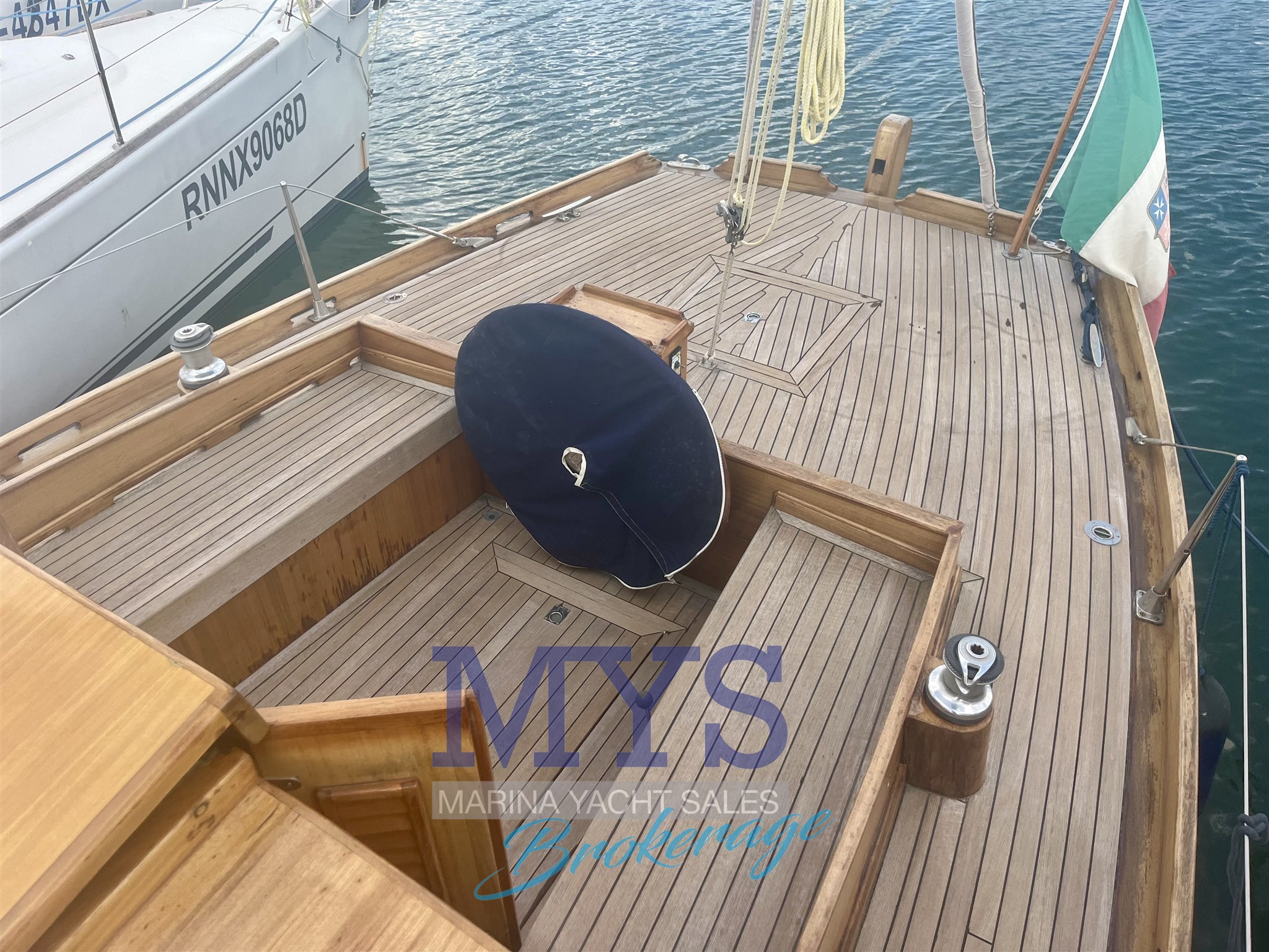 Ancre (Delta), Batteries, Chargeur de batterie, Cockpit en teck, Connexion eau sous pression à quai , Douche de cockpit, Eau sous pression, Echelle de bain, Éclairage de courtoisie, Gréement monotoron, Guindeau électrique, Pompe de cale électrique, Pompe de cale manuelle, Pont en teck, Prise de quai, 2 x Winch (Harken).