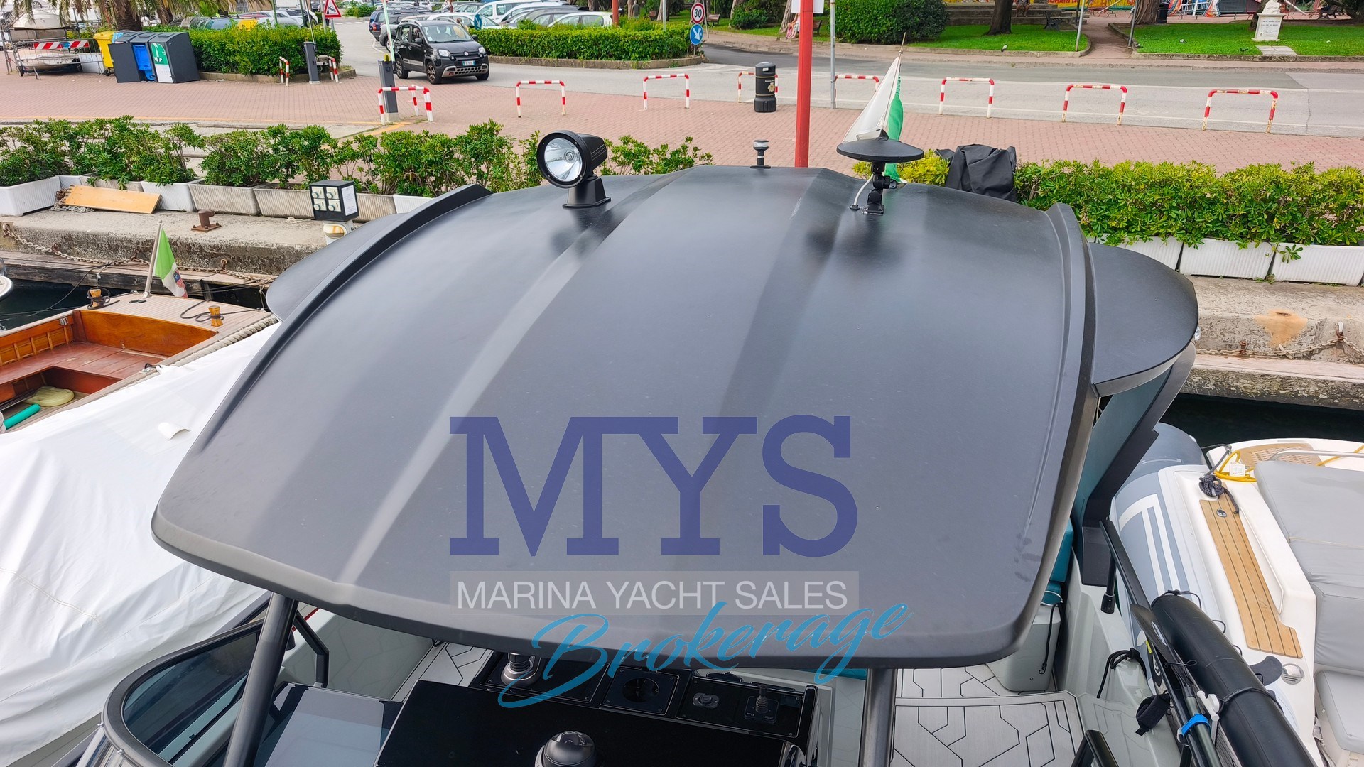 Alarme de pompe de cale, Alarme moteur, Ancre (kg 1 + 50 mt di catena), 5 x Batteries (x 105 Ah), Câble d’alimentation à quai, Chargeur de batterie, Cockpit en teck (in SeaDek), Connexion eau sous pression à quai , Corne, Couleur spéciale (Gelcoat GRIGIO 7042), Défenses, Douche de cockpit, Eau sous pression, Echelle de bain, Éclairage de courtoisie (a Led), Filères, Guindeau électrique (700 W), Lavabo dans le cockpit, Ouverture du compartiment moteur électrique, Passavant en teck (in SeaDek), Phare de poursuite, Plateforme arrière (in SeaDek), Pompe de cale automatique, Pompe de cale électrique, Pompe de cale manuelle, Pont en teck (in SeaDek), Pont en teck (in SeaDek), Porte latérale, Prise de quai, Propulseur d'étrave, Rollbar, 4 x Spots sous-marins, table de cockpit, T-Top (nero).