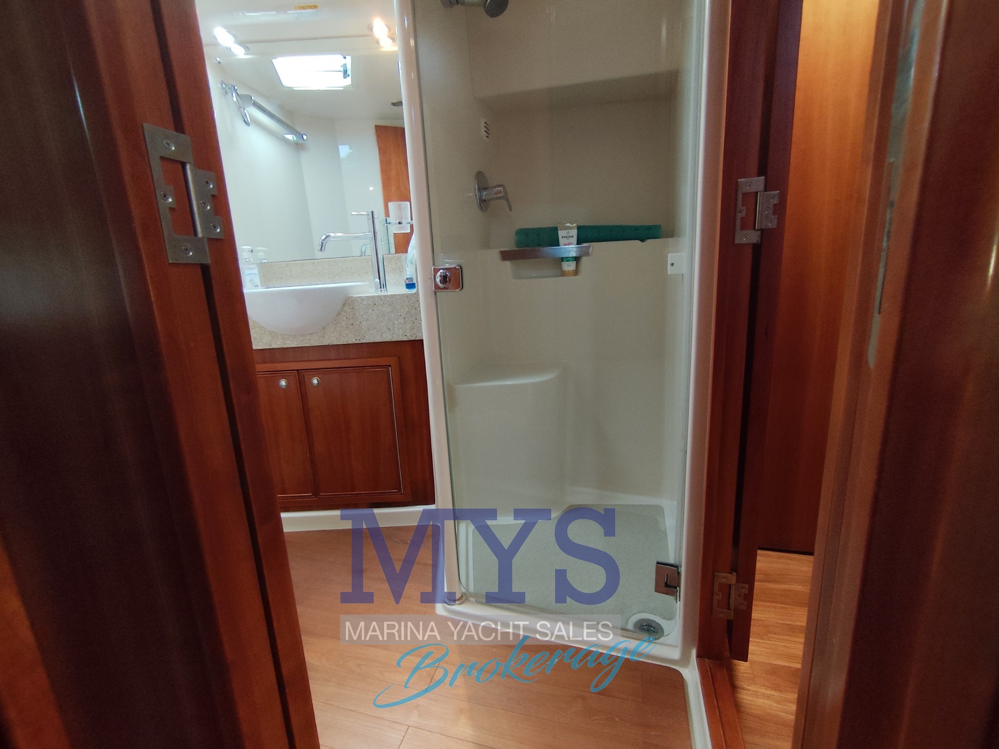 1 Cabine double parentale avec salle de bain avec lavabo, douche et WC marin électrique
