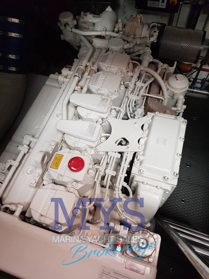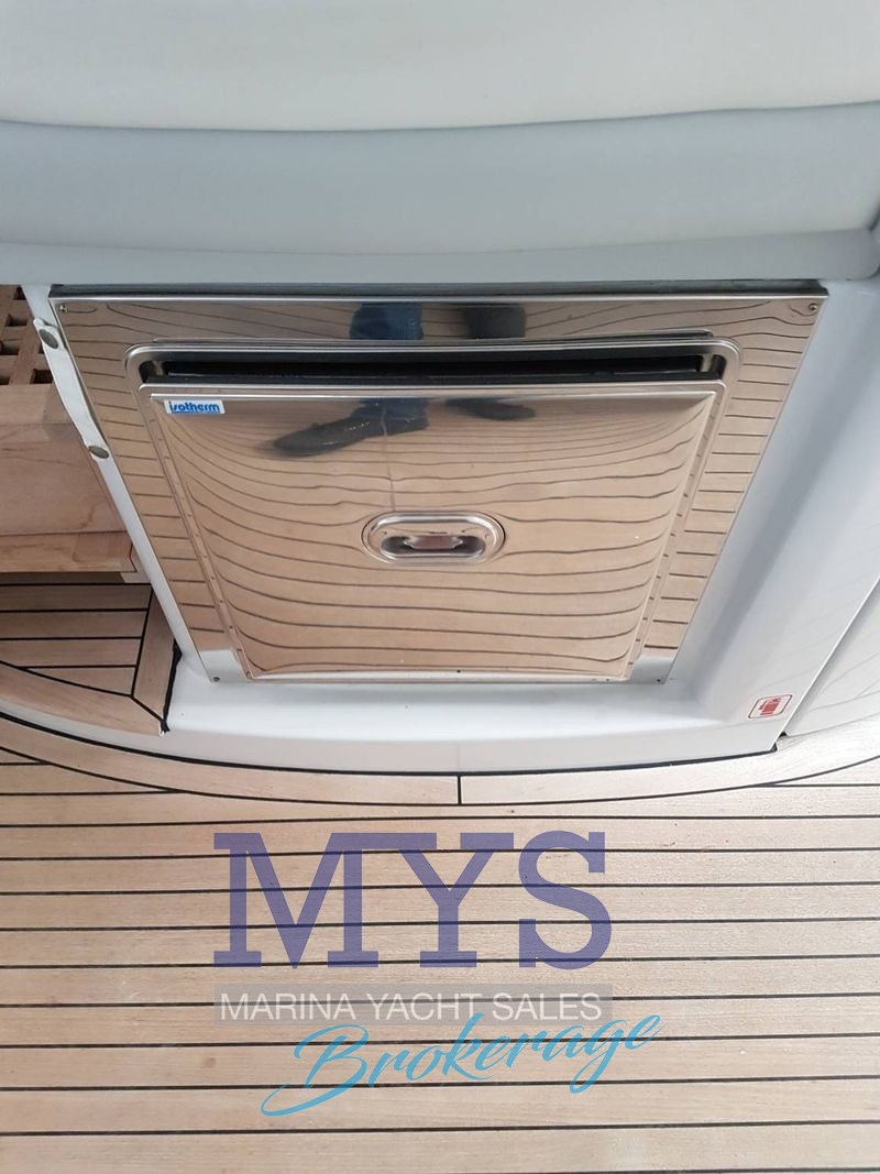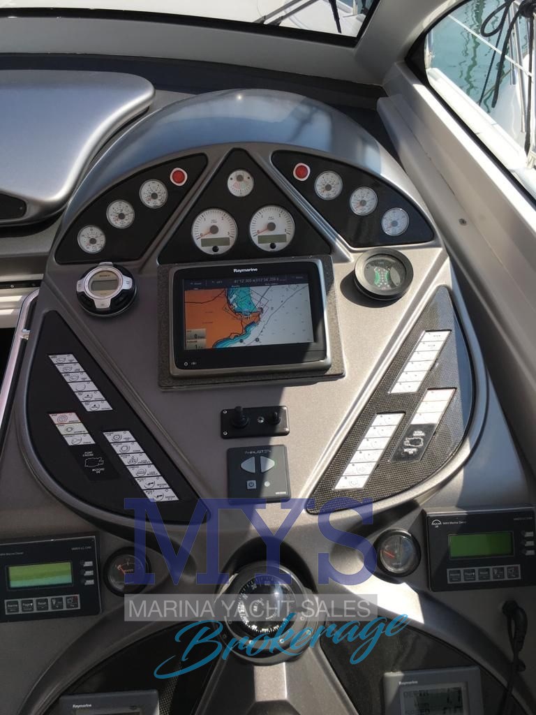 Alarme moteur, Ancre, Batteries, Câble d’alimentation à quai, Chargeur de batterie, Connexion eau sous pression à quai , Corne, Douche de cockpit, Eau sous pression, Echelle de bain, Éclairage de courtoisie, Extincteur(s) fixe(s), Flaps hydrauliques, Guindeau électrique, Hard top (in vetro apribile), Indicateurs de flaps, Lavabo dans le cockpit, Onduleur, Passerelle, Phare de poursuite, Plateforme arrière, Pompe de cale automatique, Pompe de cale manuelle, Prise de quai, Propulseur d'étrave, Spots sous-marins, table de cockpit, Winch électrique arrière.