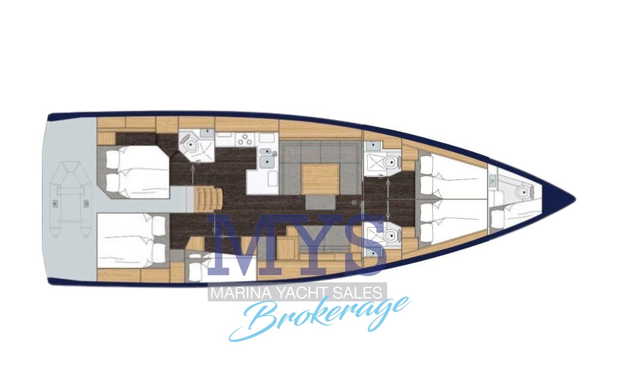 - Enorme abitabilità, ampi spazi interni paragonabili a un 55 piedi. Dinette spaziosa, cucina a L con grande piano di lavoro