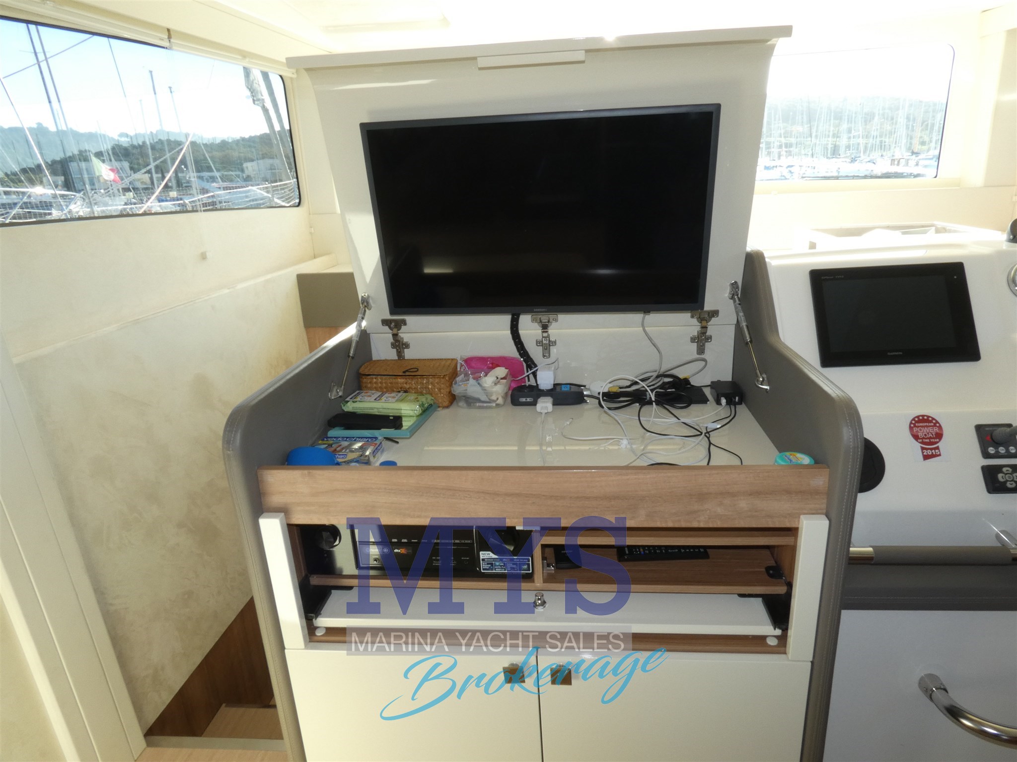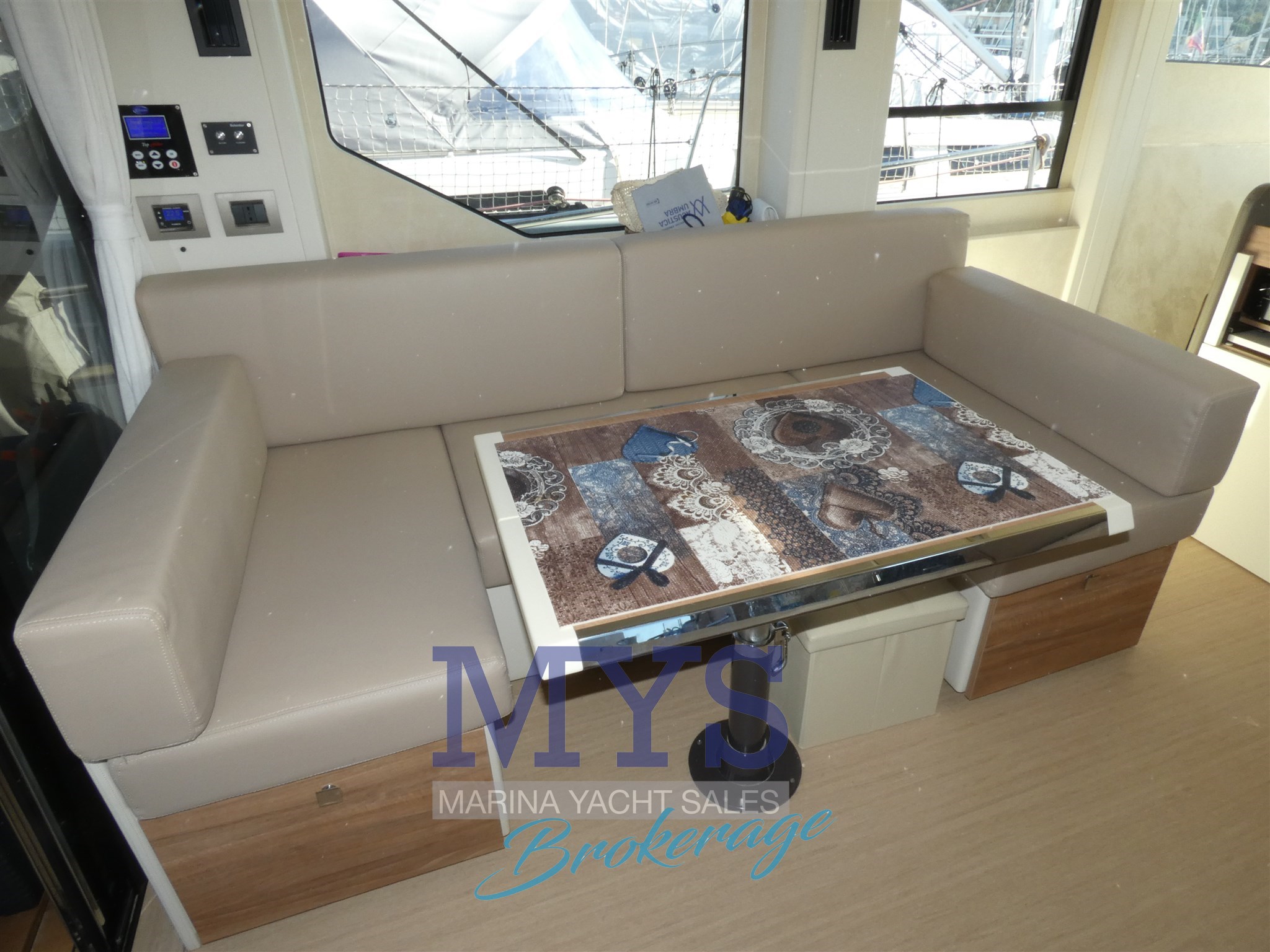 Aria condizionata, BBQ/ Grill, Boiler, Dissalatore, Impianto acque nere, Pavimento interno in legno, Prese interne 12v, Prese interne 220v, Serbatoio Acque Nere, WC marino elettrico.
