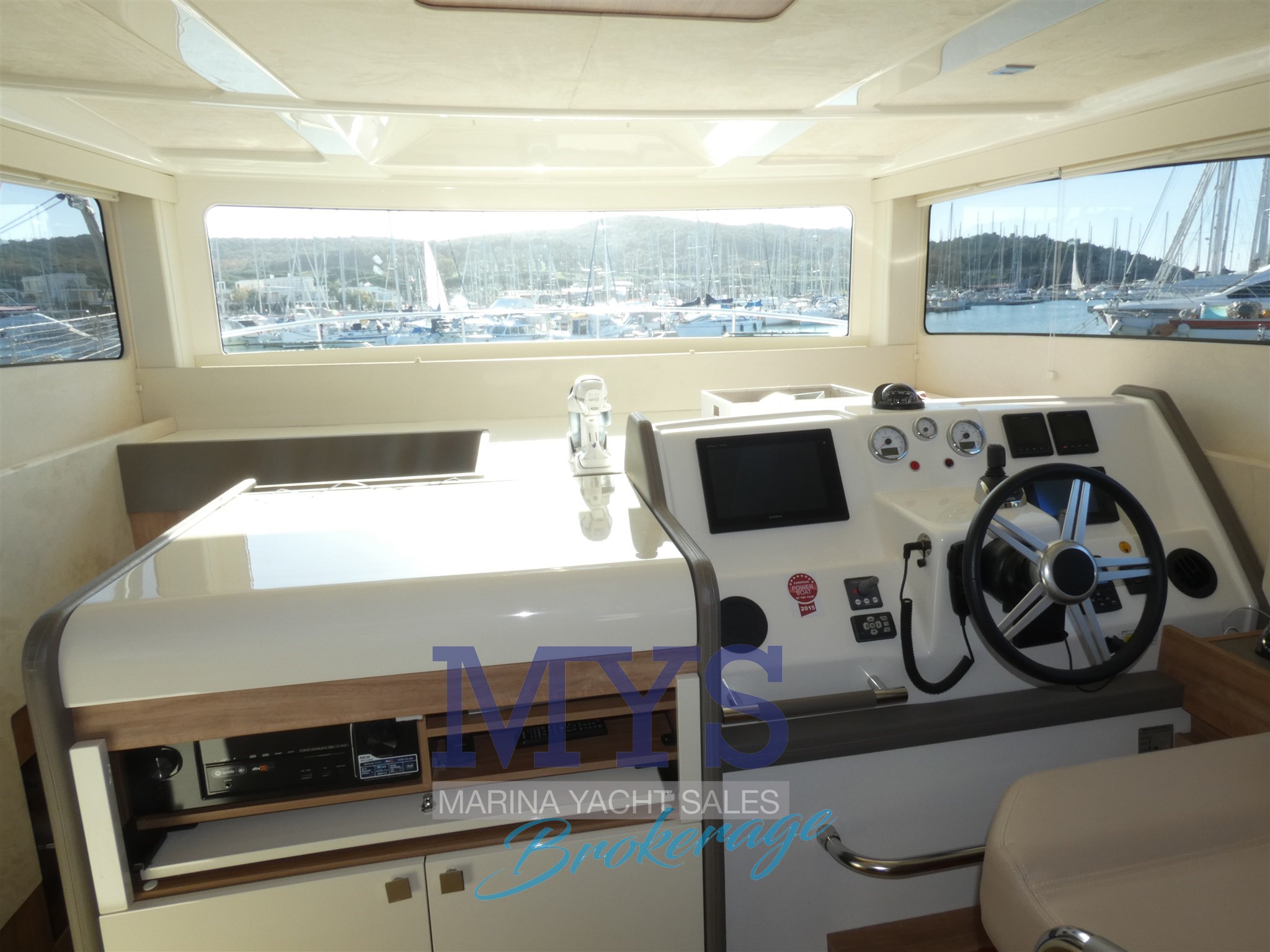 Angolo barra, Bussola, Comando motori elettronico, Ecoscandaglio, GPS, Joystick, Pilota automatico, Radio VHF.