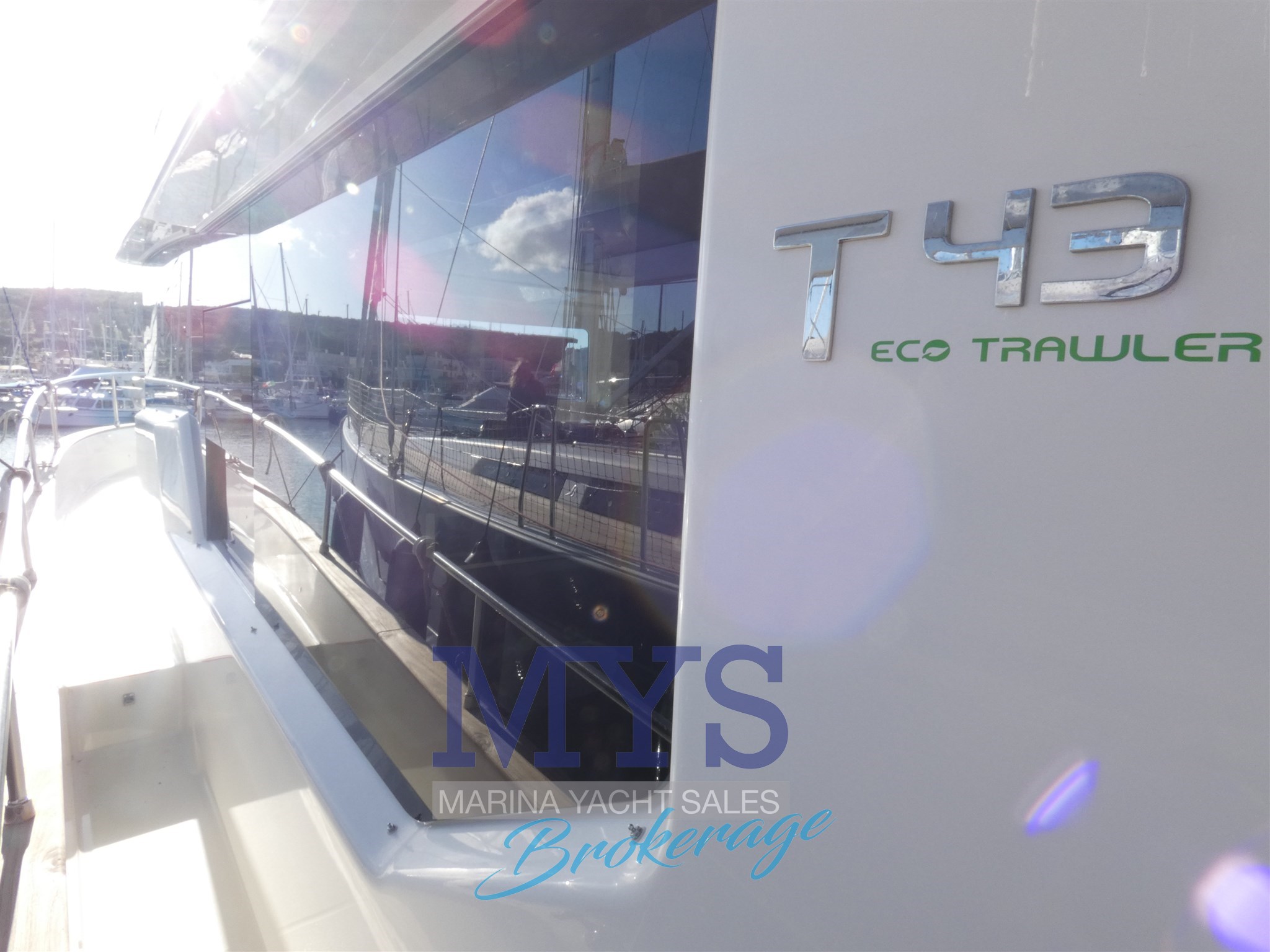 Il design è caratterizzato da finestrature lineari e da volumi generosi nelle sezioni prodiere determinati dalla scelta di una prua quasi verticale. Il T43 Trawler sfrutta al meglio i suoi quasi 14 metri di lunghezza dello scafo e i 4,37 metri di larghezza massima.